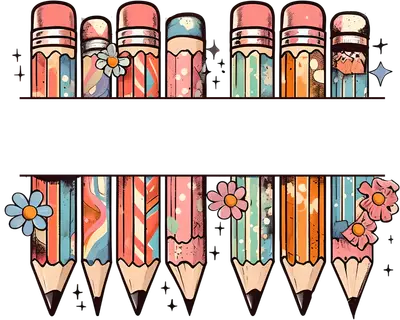Retro Pencils & Flowers DTF Transfer | Teacher & School Design