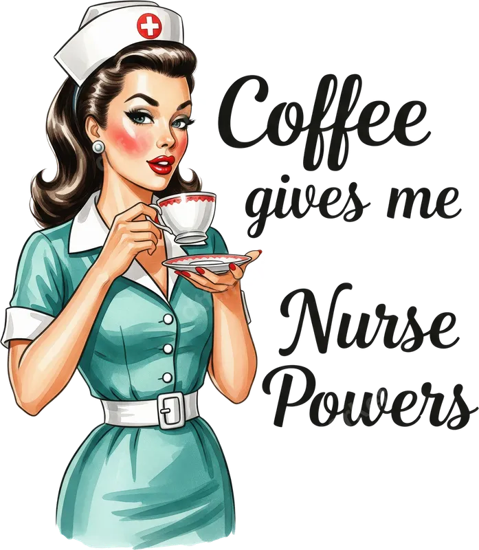 Retro Pin-Up Nurse Coffee Powers DTF Transfer Design