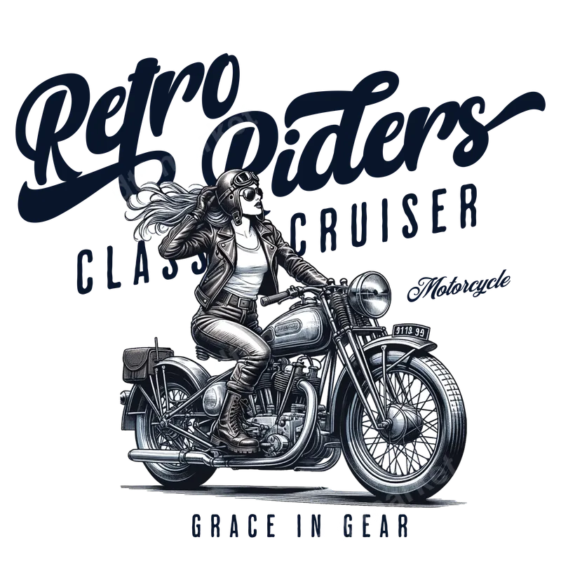 Retro Riders Classic Motorcycle DTF Transfer - Grace in Gear