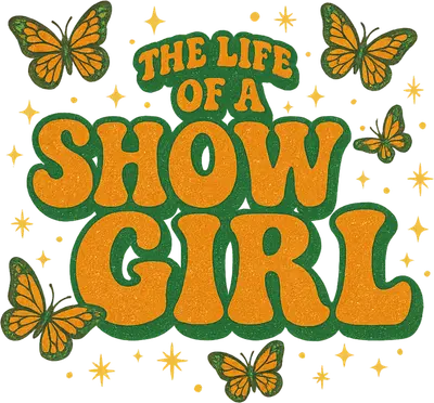 See allThis vibrant DTF transfer captures the spirit of performance with its "The Life of a Show Girl" design. Featuring bold, bubbly text in a retro orange glitter-like texture, outlined by a rich green, it evokes a glamorous 70s aesthetic. Adorned with delicate monarch butterflies and sparkling golden stars, this ready to press transfer is perfect for adding a touch of theatrical charm to any garment. This design is ideal for performers, dancers, and theater enthusiasts, or anyone who embodies the vibrant energy of a "show girl." It’s a perfect iron on transfer for bachelorette parties, dance team apparel, backstage gifts, or just celebrating the stage life. Small boutique owners and Etsy sellers can easily create custom merchandise for their performance-loving customers with this eye-catching heat transfer design. Applying this heat press transfer is straightforward for crafters and businesses alike. It adheres beautifully to a wide range of materials including cotton, polyester, cotton-poly blends, and even nylon. For best results, use a heat press at 300-325°F for 15 seconds with medium pressure, or apply with a household iron. Enjoy the convenience of no weeding required – just peel and press! It's perfect for custom t-shirts, hoodies, sweatshirts, tote bags, pillow covers, and even denim jackets. For lasting durability, wash garments inside out and tumble dry low. Experience premium quality with this ready to press transfer. It boasts vibrant, full-color printing with fine detail that truly stands out. Our DTF transfers are crack-resistant and soft to the touch, avoiding the heavy feel of traditional vinyl. Each direct to film transfer is expertly printed on high-grade DTF film with a strong adhesive backing, ensuring professional and long-lasting results for all your apparel projects.