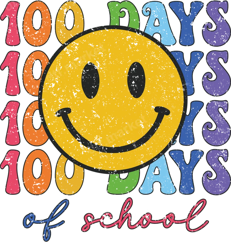 Retro Smiley 100 Days of School DTF Transfer for Teachers & Students