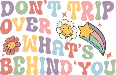 See allEmbrace a wave of positive vibes and retro style with our "Don't Trip Over What's Behind You" DTF transfer. This vibrant design features the uplifting message in a bubbly, groovy font, rendered in a delightful pastel palette of lavenders, peaches, mints, and soft yellows. Accented with charming smiley face flowers and a whimsical rainbow shooting star, this design exudes optimism and a nostalgic 70s aesthetic. It’s a perfect ready to press DTF transfer for anyone looking to add a touch of encouragement to their wardrobe or accessories. This delightful iron on transfer is ideal for anyone who loves vintage aesthetics, inspiring quotes, or simply wants to carry a positive message with them. It’s perfect for Gen Z and Millennials seeking unique apparel that reflects their optimistic outlook. Small t-shirt businesses and crafters will find this heat transfer design an excellent addition to their inventory for custom orders or unique merchandise. Gift this encouraging piece for birthdays, back-to-school season, or as a thoughtful pick-me-up for friends and loved ones. Applying this heat press transfer is incredibly easy, making it suitable for both experienced crafters and beginners. It works beautifully on a wide range of materials including cotton, polyester, cotton-poly blends, and even nylon. Simply use a heat press at 300-325°F for 15 seconds with medium pressure, or apply with a household iron. There's no tedious weeding required – just peel and press! Create custom t-shirts, cozy hoodies, stylish tote bags, unique denim jackets, or decorative pillow covers with professional results. Our ready to press transfer ensures superior quality and durability. Experience vibrant, full-color printing with exceptional detail that truly pops. The design is crack-resistant and boasts a soft, lightweight feel, avoiding the heavy, stiff texture often associated with vinyl transfers. Each direct to film transfer is produced on premium DTF film with a strong adhesive backing, guaranteeing a smooth application and a finished product that stands the test of time through countless washes.