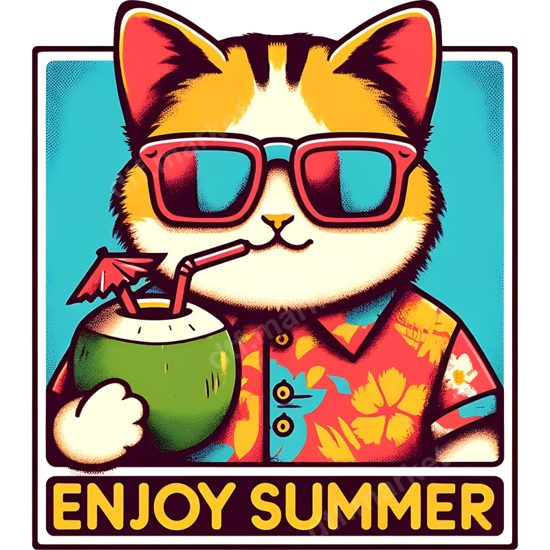 See allDive into summer with our charming Retro Summer Cat DTF transfer, a truly ready to press design that captures the ultimate relaxed vibe. This vibrant graphic features an adorable, laid-back cat sporting cool red sunglasses and a festive Hawaiian shirt. Holding a refreshing coconut drink complete with a tiny umbrella and straw, this kitty embodies pure vacation bliss. The bold 'ENJOY SUMMER' text anchors the design, making it a perfect statement piece for sunny days and warm nights. This fun and quirky apparel transfer is ideal for cat lovers, summer enthusiasts, and anyone who appreciates a touch of retro charm. It’s perfect for crafting custom t-shirts for beach trips, pool parties, or casual everyday wear. Consider it a fantastic gift idea for friends and family who adore animals, enjoy tropical themes, or simply love celebrating the sunny season. Add this unique iron on decal to your collection for memorable DIY projects and personalized apparel. Applying this direct to film transfer is straightforward and hassle-free, suitable for both beginners and experienced crafters. Our heat press ready design works seamlessly on a wide range of fabrics, including cotton, polyester, and various blends. For best results, use a heat press at 300-325°F for 15 seconds with medium pressure, then peel cold. You can also achieve great results with a household iron. Forget the tedious weeding process of traditional vinyl transfer; our DTF transfers are truly ready to go. Experience superior quality with our professional-grade DTF transfer. This heat press design boasts incredibly vibrant colors that pop and remain brilliant wash after wash, resisting cracking or fading over time. The film provides a soft, flexible feel that blends smoothly with the garment, ensuring maximum comfort. Each durable apparel transfer is printed with strong adhesive, guaranteeing a long-lasting and professional finish on all your custom creations.