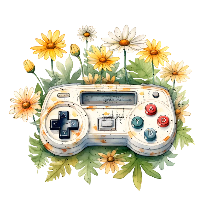 Retro Watercolor Gaming Controller Floral DTF Transfer
