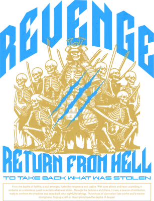 Unleash your inner warrior with this intense Revenge Samurai Skeleton Army DTF transfer. Featuring a formidable samurai skeleton leading a horde of skeletal warriors, this design captures a powerful theme of vengeance and dark justice. The bold, distressed blue lettering for "REVENGE" and "RETURN FROM HELL" contrasts sharply with the intricate gold-tan skeletons, creating a visually striking and ready to press graphic that stands out. This dramatic design is perfect for anyone drawn to gothic aesthetics, metal music culture, or martial arts themes. It's an ideal iron on transfer for individuals expressing a strong, edgy personality, or for small businesses looking for unique heat transfer designs to add to their apparel lines. Make a statement at concerts, gaming events, or as a distinctive everyday look. It's also a fantastic gift for friends who appreciate dark art and powerful imagery. Applying this heat press transfer is effortless, suitable for cotton, polyester, cotton-poly blends, and even nylon fabrics. Achieve professional results with a heat press (300-325°F for 15 seconds at medium pressure) or a household iron. No weeding or intricate cutting is needed – just peel and press! Create custom t-shirts, hoodies, sweatshirts, tote bags, denim jackets, or even unique pillow covers. For lasting durability, wash garments inside out and tumble dry on low. Experience premium quality with this ready to press transfer, boasting vibrant, full-color printing and exceptional fine detail. The design is crack-resistant and soft to the touch, avoiding the heavy, stiff feel of traditional vinyl. Each direct to film transfer is meticulously printed on high-grade DTF film with a strong adhesive backing, ensuring a flawless and long-lasting application every single time.