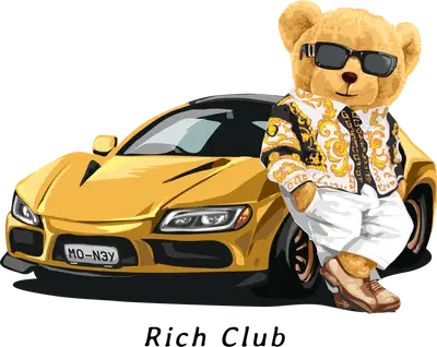 Rich Club Teddy Bear Gold Sports Car DTF Transfer | Streetwear Apparel