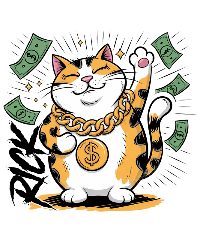 Rich Lucky Cat DTF Transfer | Gold Chain Money Streetwear