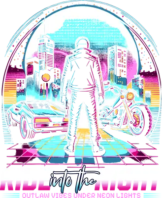 Ride into the Night Synthwave DTF Transfer: Neon City Outlaw Vibes