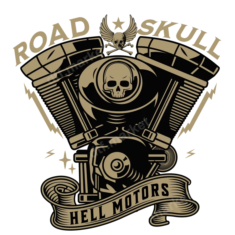 Road Skull Hell Motors V-Twin Engine Biker DTF Transfer