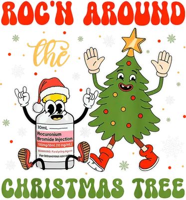 See allGet into the holiday spirit with a dose of medical humor with our unique "Roc'n Around the Christmas Tree" DTF transfer. This playful design features a retro-style cartoon Rocuronium vial, complete with a Santa hat and a rock-on gesture, grooving alongside a cheerful, dancing Christmas tree. Surrounded by festive snowflakes, this vibrant and quirky image is a fantastic conversation starter and a perfect ready to press solution for anyone in the medical field looking to add some personality to their holiday wardrobe. This design is perfectly tailored for healthcare professionals, including nurses, doctors, anesthesiologists, CRNAs, and medical students who appreciate a clever pun and a good laugh. It’s an ideal iron on transfer for Christmas parties, holiday shifts at the hospital, or as a thoughtful and funny gift for a coworker or friend in medicine. Turn ordinary garments into extraordinary holiday apparel with this distinctive heat transfer design that celebrates both the festive season and the medical profession. Applying this heat press transfer is a breeze. It works beautifully on cotton, polyester, cotton-poly blends, and even nylon fabrics. Simply apply with a heat press at 300-325°F for 15 seconds with medium pressure, or use a household iron for smaller applications. No tedious weeding or layering required – just peel and press! It's perfect for custom t-shirts, hoodies, sweatshirts, scrub tops, tote bags, pillow covers, and denim jackets. For long-lasting durability, wash your finished garment inside out and tumble dry on low heat. Experience professional-grade results with this high-quality ready to press transfer. It boasts vibrant, full-color printing with exceptional fine detail, ensuring your design truly pops. The transfer is crack-resistant and offers a soft, lightweight feel, unlike heavy vinyl. Each direct to film transfer is printed on premium DTF film with a strong adhesive backing, guaranteeing a smooth application and a professional finish every single time.