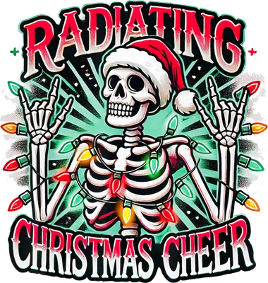 Rock & Roll Skeleton Santa Radiating Christmas Cheer DTF Transfer