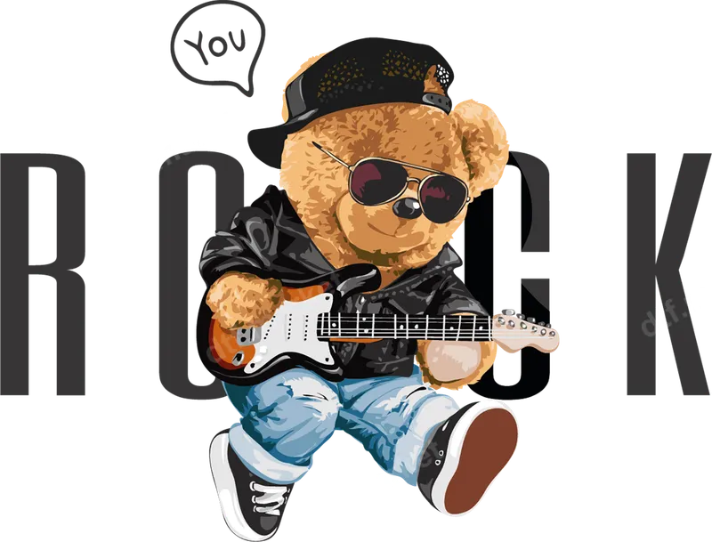 See allThis vibrant direct to film (DTF) transfer features an incredibly cool teddy bear rocking out with an electric guitar. Dressed in a slick black leather jacket, trendy blue jeans, sneakers, sunglasses, and a cap, this bear embodies serious rock star energy. The bold "ROCK" lettering in the background reinforces the theme, making this a standout design. It's a ready to press DTF transfer, ensuring you can quickly and easily bring this awesome design to life on your favorite items. Perfect for music lovers, rock enthusiasts, or anyone who appreciates a blend of cute and edgy style. This versatile design makes an excellent gift for birthdays, holidays, or just to surprise a friend who loves unique apparel. It’s ideal for customizing band merchandise, creating a statement piece for concerts, or adding a touch of cool to everyday wear. Young adults, teens, and even older fans of rock 'n' roll will love expressing their personality with this fun graphic. Applying this heat transfer is simple and efficient. Our high-quality DTF transfers are designed to adhere beautifully to a wide range of materials, including cotton, polyester, and various fabric blends. For best results, use a heat press at 300-325°F for 15 seconds with medium pressure. Even if you only have a household iron, you can achieve a fantastic application. The beauty of these iron on transfers is that there's absolutely no weeding required, saving you time and effort. You'll love the professional quality of this t-shirt transfer. Each design is printed on premium DTF film, offering incredibly vibrant colors and sharp details that truly pop. The transfers are durable, crack-resistant, and boast a soft, smooth feel once applied, ensuring long-lasting wear without compromising comfort. With strong adhesive properties, this ready to press transfer will securely bond to your chosen garment, maintaining its integrity wash after wash.