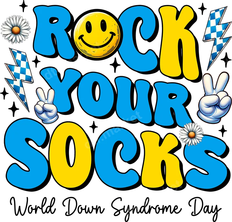 See allThis eye-catching DTF transfer features the inspiring phrase "ROCK YOUR SOCKS World Down Syndrome Day" in a fun, retro-groovy font. Adorned with cheerful yellow smiley faces, classic peace signs, checkered lightning bolts, and delicate daisies, this vibrant design captures a positive and supportive spirit. It's a perfect ready to press transfer for March 21st, inviting everyone to spread awareness with style. This uplifting design is ideal for individuals, families, friends, and advocates passionate about Down Syndrome awareness. It's perfect for celebrating World Down Syndrome Day on March 21st, community events, school fundraisers, or simply showing everyday support. Create meaningful custom apparel for awareness walks or as a thoughtful gift for someone who champions inclusivity and acceptance. Our direct to film transfers are incredibly versatile, adhering beautifully to a wide range of fabrics including cotton, polyester, and their blends. Applying this heat transfer is simple with a heat press at 300-325°F for 15 seconds with medium pressure, followed by a cool peel. For smaller projects, a household iron can also be used. Enjoy the convenience of a heat press ready design with absolutely no weeding or layering required. Experience superior quality with our professional-grade DTF transfer. Each iron on transfer boasts vibrant, crisp colors that remain bright wash after wash, resisting cracking and fading. The durable DTF film ensures a soft hand feel on your garment, making your apparel comfortable and long-lasting. With strong adhesive properties, this shirt design creates a professional finish that will truly stand the test of time.