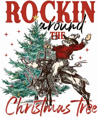 See allEmbrace the festive spirit with a wild Western twist! This unique DTF transfer features the playful phrase 'ROCKIN around THE Christmas Tree' alongside a lively illustration. Imagine Santa Claus, not in his sleigh, but as a spirited cowboy, complete with hat, chaps, and a lasso, riding a bucking reindeer like it's a rodeo champion around a beautifully adorned Christmas tree. This design perfectly captures a fun, country-inspired holiday vibe and is ready to press onto your favorite blanks. This eye-catching design is perfect for anyone who loves country music, Western culture, or just a good laugh during the holiday season. It makes an excellent gift for cowboys, cowgirls, line dancers, or friends and family who celebrate a rustic Christmas. Ideal for creating custom apparel for Christmas parties, family gatherings, or as unique inventory for Etsy t-shirt sellers and small boutique owners. Use this iron on transfer to personalize gifts, or craft a standout heat transfer design for your own festive wardrobe. Applying this vibrant heat press transfer is quick and easy. It works flawlessly on a wide variety of materials including cotton, polyester, cotton-poly blends, and even nylon. Achieve professional results using a heat press set at 300-325°F for 15 seconds with medium pressure, or apply with a household iron. Forget tedious weeding; simply peel and press! This versatile design is perfect for custom t-shirts, cozy hoodies, festive sweatshirts, practical tote bags, charming pillow covers, and even rugged denim jackets. For long-lasting wear, wash garments inside out and tumble dry on low. Experience superior quality with this ready to press transfer. Our advanced printing technology ensures vibrant, full-color reproduction with exceptional detail and crisp lines that truly make the design pop. The finished result is crack-resistant, durable, and boasts a soft hand feel, unlike bulky vinyl. Each direct to film transfer is meticulously printed on premium DTF film, featuring a strong adhesive backing for hassle-free application and professional-grade garments every single time.