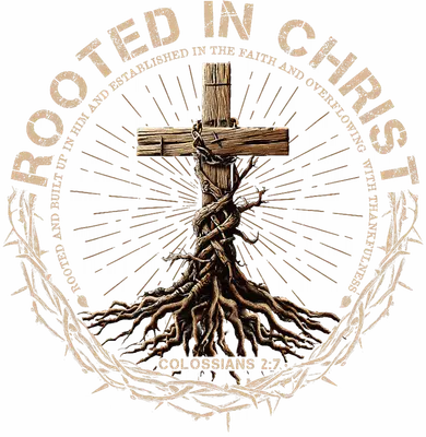 Rooted in Christ Cross DTF Transfer | Colossians 2:7 Faith Design