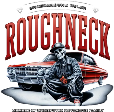 Roughneck Skeleton Lowrider Car DTF Transfer | Urban Streetwear Design