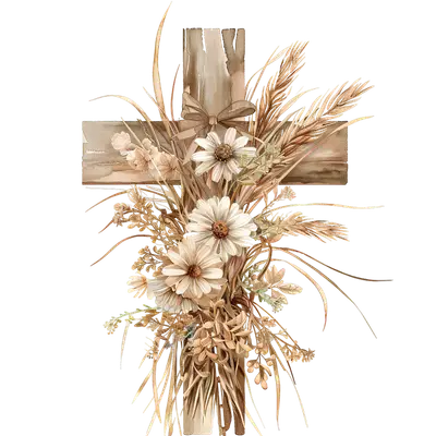 Rustic Watercolor Floral Cross DTF Transfer with Daisies