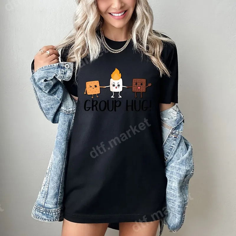 See allEmbrace the warmth and sweetness of friendship with our adorable 'S'mores Group Hug!' DTF transfer. This charming design features a happy graham cracker, a toasted marshmallow, and a cheerful chocolate bar, all holding hands in a delightful group hug. It's a fun and lighthearted graphic that perfectly captures the joy of gathering around a campfire. This ready to press DTF transfer is an instant way to add a touch of wholesome humor and deliciousness to any garment or accessory. This cute S'mores Group Hug design is perfect for anyone who loves camping, bonfires, or simply enjoys the classic dessert. Ideal for family vacations, summer camp events, outdoor adventures, or as a fun gift for friends and fellow foodies. Whether you're making matching shirts for a camping trip, creating a unique birthday present, or just want to spread some sugary cheer, this apparel transfer makes a fantastic choice for all ages and occasions. Our premium DTF transfers are incredibly versatile, designed to apply seamlessly to a wide variety of fabrics including cotton, polyester, and their blends. For best results, use a heat press at 300-325°F for 15 seconds with medium, even pressure. This heat press design ensures a professional finish without the hassle of weeding, unlike traditional vinyl. You can also achieve great results with a household iron, making it easy for anyone to create custom transfer apparel at home. Experience superior quality with our durable direct to film transfers. Each iron on transfer boasts vibrant, crisp colors and exceptional detail that stands up to countless washes without cracking or fading. The transfer material is soft to the touch, ensuring comfort while wearing. We use professional-grade DTF film with a strong, long-lasting adhesive, guaranteeing your custom transfer will look fantastic for years to come. Elevate your wardrobe with a design that's as sweet and enduring as a perfect s'more.