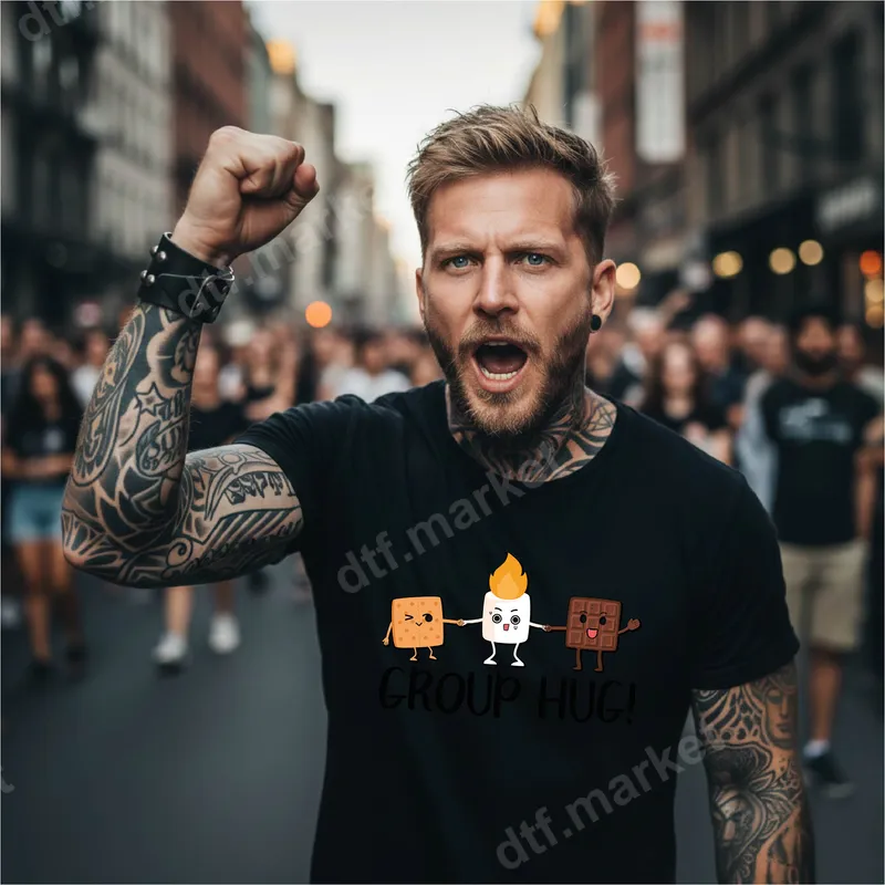 See allEmbrace the sweetness of friendship with our adorable S'mores Group Hug DTF transfer! This charming design features a cute graham cracker, a happy marshmallow with a tiny flame, and a smiling chocolate bar all holding hands, proudly displaying "GROUP HUG!". It perfectly captures the cozy, fun spirit of campfire gatherings and sweet treats. This high-quality DTF transfer is ready to press onto your favorite apparel or accessories. This cute heat transfer is ideal for anyone who loves camping, bonfires, or simply enjoys s'mores. It makes a fantastic gift for friends, family, or children, perfect for birthday celebrations, summer vacations, or a fun addition to everyday wardrobe. Craft unique matching family shirts for your next camping trip or personalize gifts for fellow foodies with this charming apparel transfer. Applying your S'mores Group Hug design is a breeze. Our ready to press transfers work beautifully on cotton, polyester, and various fabric blends. For best results, use a heat press at 300-325°F for 15 seconds with medium pressure, followed by a cold peel. You can even use a household iron for smaller applications, making this iron on transfer incredibly versatile. No tedious weeding or complicated steps required – just press and enjoy! Experience professional-grade quality with every print. Our direct to film transfers boast vibrant colors, exceptional detail, and a soft, flexible feel that won't crack or fade. Each shirt design is printed on premium DTF film with a strong, reliable adhesive, ensuring a durable finish. Elevate your custom creations with transfers that look and feel amazing on any garment.