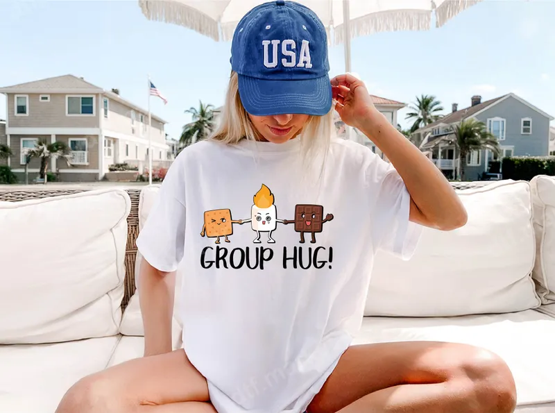See allEmbrace the sweet spirit of friendship with our delightful S'mores Group Hug DTF transfer. This charming design features three iconic s'mores ingredients – a happy graham cracker, a perfectly toasted marshmallow, and a smiling chocolate bar – all holding hands in a warm embrace, accompanied by the joyful text 'GROUP HUG!'. It's a fun and whimsical heat press design that brings a cozy, heartwarming vibe to any garment. This ready to press transfer captures the essence of togetherness and is ideal for anyone who loves camping, bonfires, or simply sweet treats. This adorable iron on decal is perfect for campers, outdoor enthusiasts, foodies, and anyone with a sweet tooth. It makes a fantastic gift for friends, family, or even yourself to wear to summer barbecues, camping trips, bonfire gatherings, or casual outings. Imagine matching shirts for a family reunion or a fun shirt for a youth group event. This design is also great for small businesses looking for unique t-shirt transfers to appeal to a broad, fun-loving audience. Applying this direct to film transfer is straightforward and hassle-free, suitable for both professionals and DIY crafters. Our high-quality apparel transfer works beautifully on a wide range of materials, including cotton, polyester, and various blends. For best results, use a heat press at 300-325°F for 15 seconds with medium pressure, then perform a cool peel. You can even use a household iron, making it an accessible iron on for anyone. No more tedious weeding like with traditional vinyl transfer designs! Experience superior quality with this vibrant heat transfer. Each design is printed with exceptional color clarity, ensuring your finished product stands out. Our professional-grade DTF film offers excellent durability, resisting cracks and fading even after multiple washes. The result is a soft-to-the-touch finish that feels like part of the fabric, not a bulky addition. Enjoy a long-lasting, professional-looking garment with this premium heat press ready design.