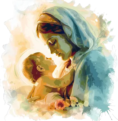 Sacred Mary & Baby Jesus DTF Transfer - Holy Family Watercolor Art