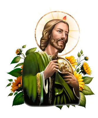Saint Jude Thaddeus DTF Transfer with Sunflowers | Ready to Press