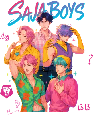 SAJA BOYS Anime Boy Band DTF Transfer | Colorful Manga Style Heat Press Design