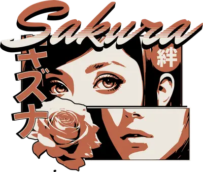 Sakura Rose Anime Eyes DTF Transfer - Japanese Streetwear Design