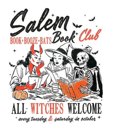 Salem Book Club Witches & Skeleton DTF Transfer - All Witches Welcome
