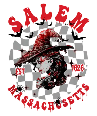 Salem Witch Est 1626 DTF Transfer with Checkered Bats & Spiders