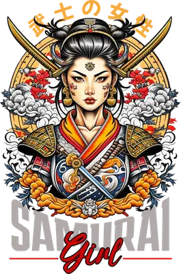 Samurai Girl Warrior DTF Transfer - Japanese Katana Art
