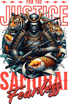 Samurai Justice Fearless DTF Transfer | Tigers & Koi Fish Design