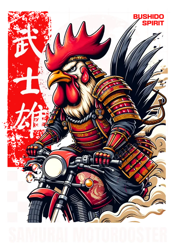 Samurai Rooster Motorcycle DTF Transfer - Bushido Spirit Design