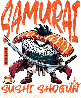 Samurai Sushi Shogun DTF Transfer | Funny Food Warrior Heat Press Design
