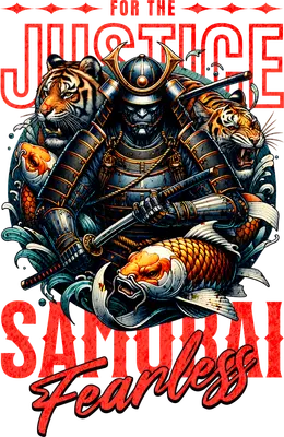 Samurai Warrior Justice Fearless DTF Transfer with Tigers & Koi Fish