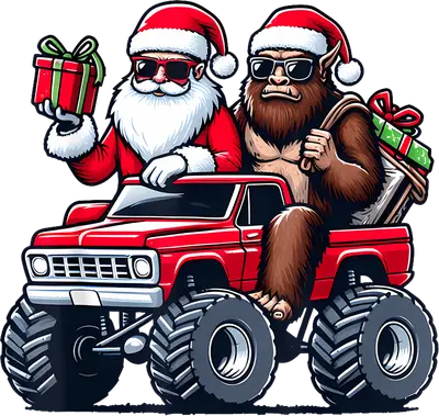 Santa & Bigfoot Monster Truck Christmas DTF Transfer