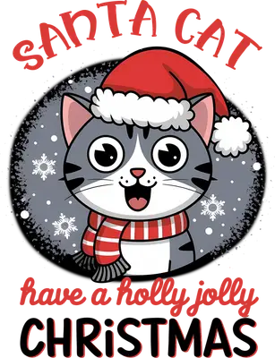 Santa Cat Holly Jolly Christmas DTF Transfer | Cute Holiday Feline