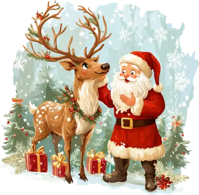 Santa Claus & Reindeer Christmas DTF Transfer - Festive Holiday Design