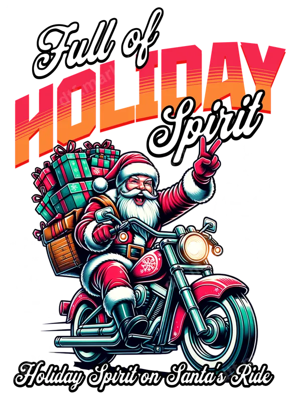 Santa on Motorcycle DTF Transfer - Full of Holiday Spirit