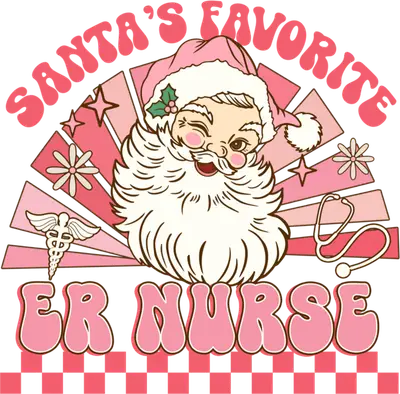 Santa's Favorite ER Nurse DTF Transfer | Pink Retro Christmas Design