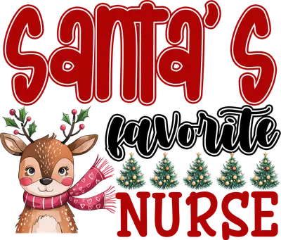 Santa's Favorite Nurse DTF Transfer | Cute Reindeer Christmas Design