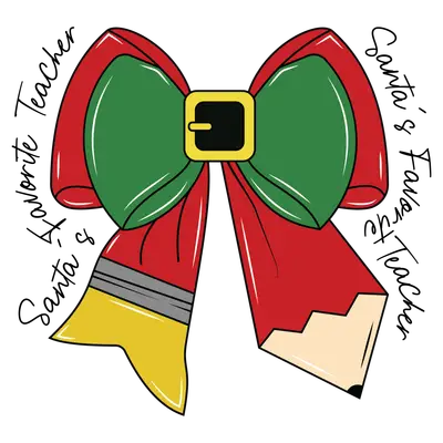 Santa's Favorite Teacher Christmas Pencil Bow DTF Transfer