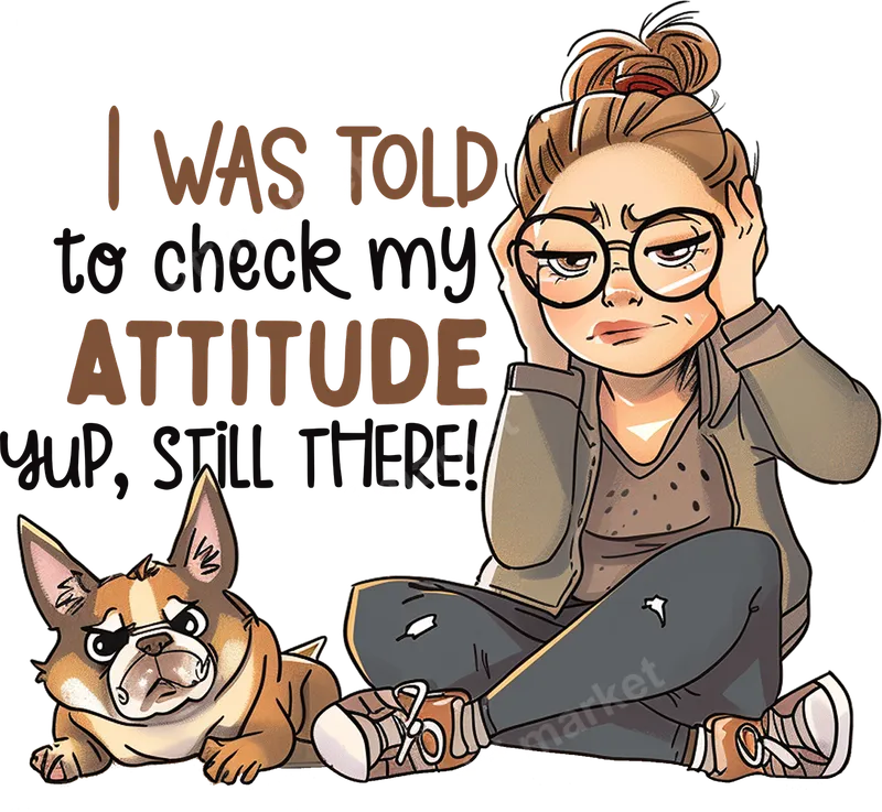 See allUnleash your sass with this hilarious DTF transfer. It features a relatable, grumpy woman with hands on her head and a perfectly matched scowling French Bulldog. The bold text reads, 'I WAS TOLD to check my ATTITUDE yup, STILL THERE!' This design perfectly captures that 'not in the mood' vibe. It’s a high-quality, ready to press heat transfer, ideal for personalizing apparel or creating unique gifts. This 'Yup, Still There!' design is perfect for anyone who loves funny, sarcastic apparel and isn't afraid to show their personality. It makes an excellent iron on transfer for best friends, sisters, moms, or any humor-loving pet owner. Imagine this witty heat press design on a custom t-shirt or cozy hoodie, great as a birthday gift or just because. It’s also a fantastic shirt design for French Bulldog enthusiasts. Applying your new heat press transfer is incredibly easy! This versatile iron on decal works seamlessly on cotton, polyester, and various blends. For best results, use a heat press at 300-325°F for 15 seconds with medium pressure. You can also achieve great results with a household iron following our instructions. No weeding required, saving you time and effort. Just press and peel for a perfectly applied design. Experience superior quality with our premium direct to film transfer. Each apparel transfer boasts vibrant colors and exceptional detail that stands up to countless washes without cracking or fading. The finish is soft to the touch, ensuring comfort. Crafted using professional-grade DTF film and strong adhesive, our designs are built to last, providing a durable and stylish addition to any garment. Elevate your custom clothing with a transfer that makes a statement!