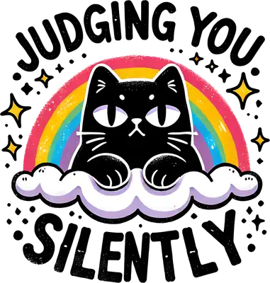 Sarcastic Black Cat Rainbow DTF Transfer - Judging You Silently