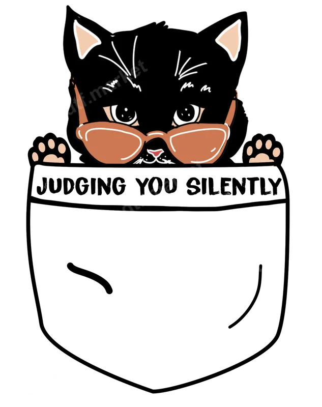 See allThis hilarious DTF transfer features a cool black cat peeking from a pocket, sporting stylish sunglasses and the witty phrase "JUDGING YOU SILENTLY." It's a perfect ready to press design for anyone who appreciates a good dose of understated sarcasm and feline charm. This transfer captures that universal feeling of silent observation with a playful, trendy aesthetic that's sure to resonate. Ideal for cat enthusiasts, pet owners with a sense of humor, or anyone who enjoys a funny, sassy statement piece. This unique design makes an excellent gift for birthdays, casual everyday wear, or just to add a touch of personality to your wardrobe and share a laugh with friends. It's guaranteed to spark conversations and knowing glances, making it perfect for social gatherings or just expressing your mood. Our high-quality heat press transfer is incredibly easy to apply to a variety of garments and accessories. Simply use a heat press (recommended at 300-325°F for 15 seconds with medium pressure) or even a household iron for a quick and professional finish. No tedious weeding required, making your crafting process smooth and enjoyable. This versatile iron on transfer works perfectly on cotton, polyester, and their blends. Crafted with vibrant, durable inks on premium DTF film, this t-shirt transfer boasts exceptional color retention and crack resistance, ensuring your design looks fantastic wash after wash. The soft-touch feel ensures maximum comfort, making it an ideal apparel transfer for daily wear. Enjoy professional-grade results every time you press this direct to film transfer.