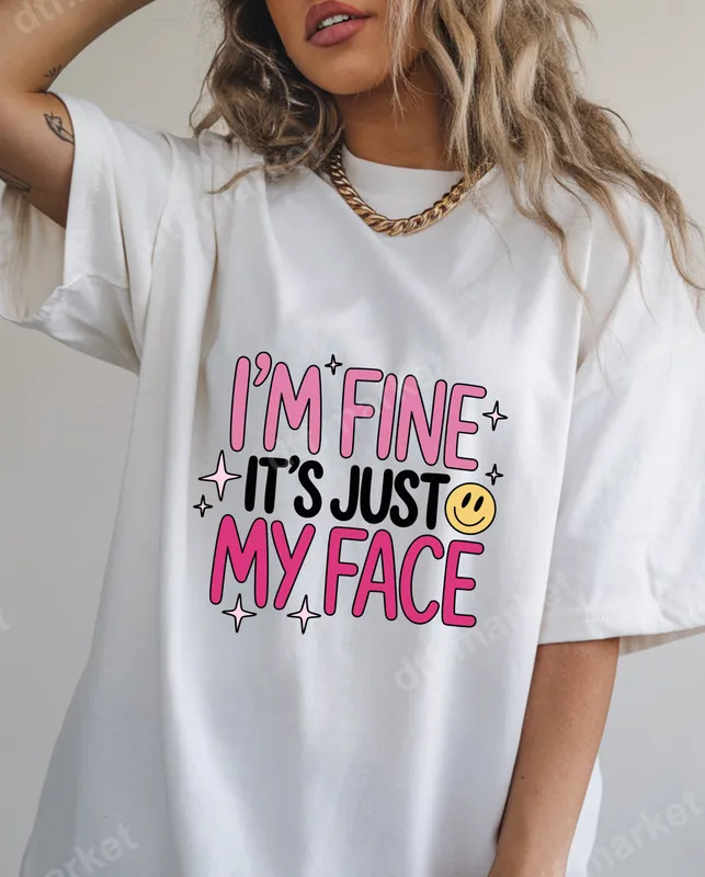 Sarcastic "I'm Fine It's Just My Face" DTF Transfer - Funny Smiley Retro Design