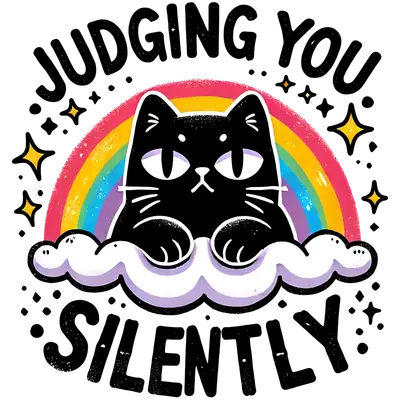 See allUnleash your inner sassy feline with our 'Judging You Silently' black cat DTF transfer. This hilarious design features an adorable yet stern black cat peeking from behind a fluffy cloud, set against a vibrant rainbow and sparkling stars. The bold, playful lettering clearly states the cat's (and your!) unspoken thoughts. It's a perfect blend of cute and comedic, making a statement without saying a word. This high-quality DTF transfer is ready to press, bringing instant personality to any item. This unique design is perfect for cat enthusiasts, meme lovers, and anyone who appreciates a good dose of sarcastic humor. It makes an excellent gift for friends, family, or even yourself, for birthdays, 'just because' moments, or as a fun addition to your everyday wardrobe. Small t-shirt businesses and crafters looking for trendy, funny inventory will find this iron on transfer incredibly popular. Imagine the smiles and knowing glances this heat transfer design will get at casual gatherings or even during zoom calls! Applying this heat press transfer is a breeze, compatible with a wide range of fabrics including cotton, polyester, and cotton-poly blends. For best results, use a heat press at 300-325°F for 15 seconds with medium pressure, or follow instructions for a household iron. There's no tedious weeding required – just peel and press! Create custom t-shirts, cozy hoodies, stylish tote bags, unique denim jackets, or even fun pillow covers. For lasting durability, simply wash garments inside out and tumble dry low. Experience superior quality with this ready to press transfer. It boasts vibrant, full-color printing that captures every detail, from the cat's expressive eyes to the rainbow's subtle textures. Our direct to film transfer is crack-resistant, soft to the touch, and avoids the heavy, stiff feel often associated with vinyl transfers. Each apparel transfer is printed on premium DTF film with a strong adhesive backing, ensuring professional, durable results that stand out in any crowd.