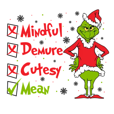 Sarcastic 'Mean' Grinch Christmas Checklist DTF Transfer