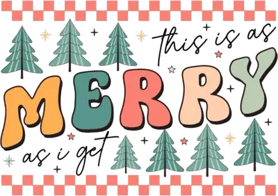 See allEmbrace the holiday season with a touch of humor using this "This is As Merry As I Get" DTF transfer. Featuring a fun, retro aesthetic with chunky bubble letters in warm orange, teal, peach, and light green, this design immediately catches the eye. Stylized Christmas trees and whimsical stars are nestled around the text, all framed by a cheerful peach and white checkered border. This vibrant ready to press design perfectly captures a playfully sarcastic holiday spirit, making it an instant favorite for those who appreciate a less-than-traditional Christmas vibe. This design is perfect for anyone with a dry wit or those who prefer their holiday cheer with a side of sarcasm. It’s an ideal choice for friends, family, or even yourself, adding a unique twist to festive gatherings and office Christmas parties. Small t-shirt businesses, Etsy sellers, and crafters looking for distinctive holiday inventory will find this iron on transfer an excellent addition to their offerings. Use this heat transfer design to create memorable gifts or custom apparel for group events, spreading laughs throughout the festive season. Applying this heat press transfer is quick and effortless. It works beautifully on a wide variety of materials, including cotton, polyester, cotton-poly blends, and even nylon. For best results, use a heat press at 300-325°F for 15 seconds with medium pressure, or apply with a household iron. There's no tedious weeding required—simply peel the film and press. Transform everyday items like custom t-shirts, cozy hoodies, soft sweatshirts, practical tote bags, festive aprons, or even playful pajama sets into unique, personalized statements. For lasting durability, wash garments inside out and tumble dry on low. Experience professional-grade results with this premium ready to press transfer. It boasts vibrant, full-color printing that captures every fine detail of the retro design. The finished product is crack-resistant and soft to the touch, entirely free from the heavy, stiff feel often associated with vinyl transfers. Each direct to film transfer is meticulously printed on high-quality DTF film with a strong adhesive backing, ensuring a perfect application and outstanding longevity for all your custom apparel projects.