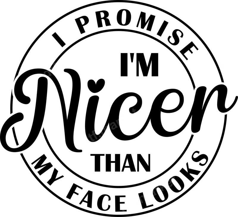 Sarcastic "Nicer Than My Face Looks" DTF Transfer Design